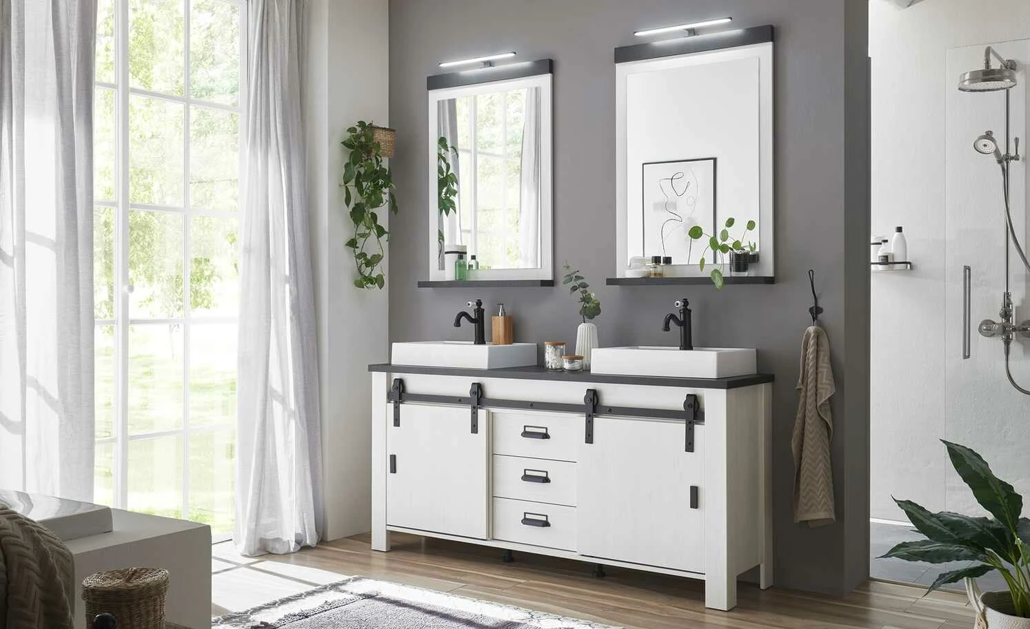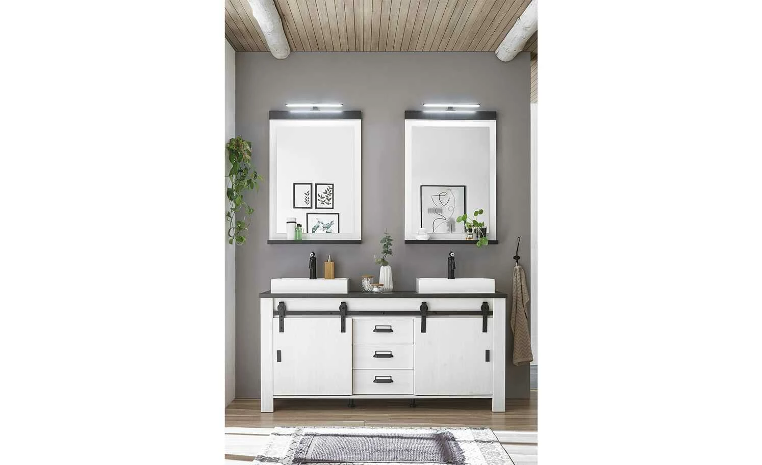 - Farbe / Dekor: Pinie Weiß (Nachbildung) / Anthrazit